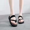 Double Strap Slip On: These slingback flat sandals are easy to slip on and off. The rectangular metal buckled strap can be adjusted to a snug fit.